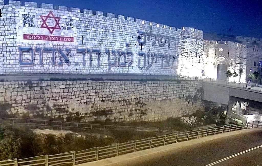 Beautiful recognition from the city of Jerusalem, where the walls of the old city were lit up with the words “Jerusalem salutes Magen David Adom”.
